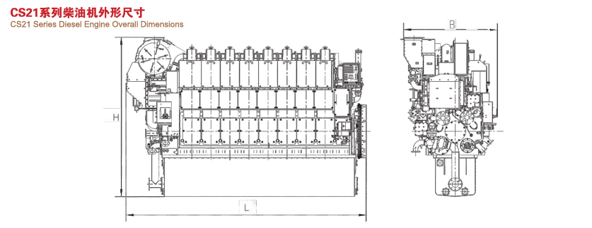 CS21 series diesel engine is developed by 711 institute and foreign famous design institute, with high output power and independent intellectual property rights, and its performance has reached to international leading level. The engine can select of mechanical or high-pressure common rail fuel oil system, will equip with highpressure ratio turbocharger, completely meet Tier II emission standard, and has good economy for lower fuel oil consumption.
