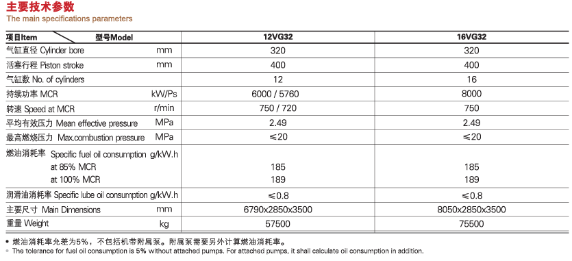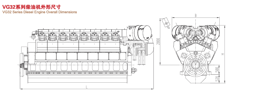 VG32 marine diesel engine is a turbocharged, irreversible, direct injection, 4-stroke medium speed V-angle diesel engine with a charging cooler. The product has many advantages, such as low oil consumption, low emission, low vibration and high reliability etc. It can be output of 100% rating at free-endF and use 180cSt/50^C HFO.